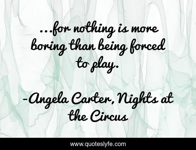 This page presents the quote "...for nothing is more boring than being forced to play.". Author of this quote is Angela Carter, Nights at the Circus. .