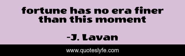 This page presents the quote "fortune has no era finer than this moment". Author of this quote is J. Lavan. .