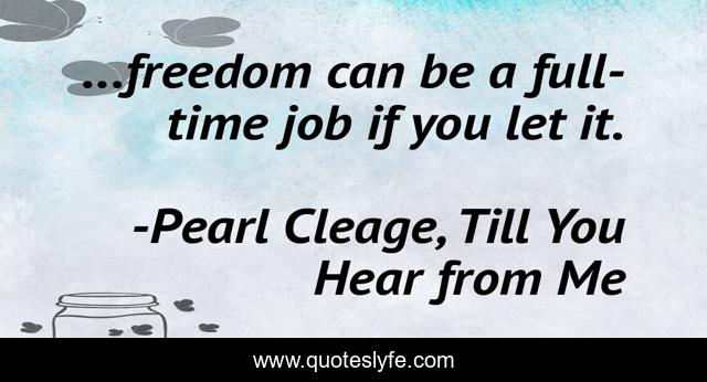 This page presents the quote "...freedom can be a full-time job if you let it.". Author of this quote is Pearl Cleage, Till You Hear from Me. This quote is about freedom, free-women, wisdom, pearl, inspirational, enthusiasm, liberating,.