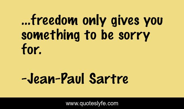 This page presents the quote "...freedom only gives you something to be sorry for.". Author of this quote is Jean-Paul Sartre. This quote is about existentialism, freedom, nihilism,.