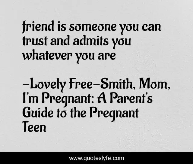 "Lovely Free-Smith, Mom, I'm Pregnant: A Parent's Guide to the Pregnant Teen Quotes." Quoteslyfe.com, 2025. Sat. 06 Dec. 2025. <https://www.quoteslyfe.com/quote/friend-is-someone-you-can-trust-and-50324>.