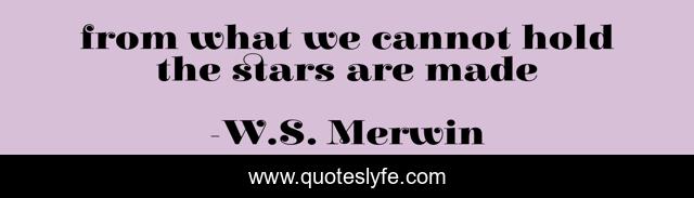This page presents the quote "from what we cannot hold the stars are made". Author of this quote is W.S. Merwin. This quote is about youth, poetry, stars,.