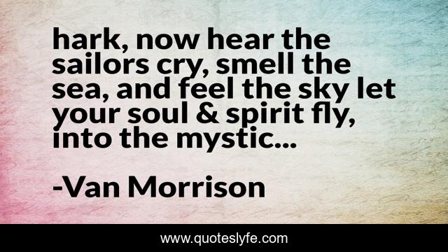 This page presents the quote "hark, now hear the sailors cry, smell the sea, and feel the sky let your soul & spirit fly, into the mystic...". Author of this quote is Van Morrison. This quote is about magic, sailing, sea, ocean,.