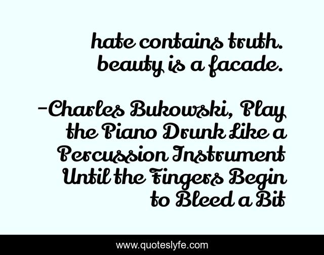 "Charles Bukowski, Play the Piano Drunk Like a Percussion Instrument Until the Fingers Begin to Bleed a Bit Quotes." Quoteslyfe.com, 2025. Sun. 07 Dec. 2025. <https://www.quoteslyfe.com/quote/hate-contains-truth-beauty-is-a-facade-163742>.
