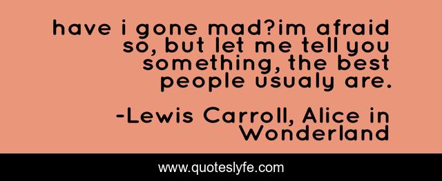 This page presents the quote "have i gone mad?im afraid so, but let me tell you something, the best people usualy are.". Author of this quote is Lewis Carroll, Alice in Wonderland. .