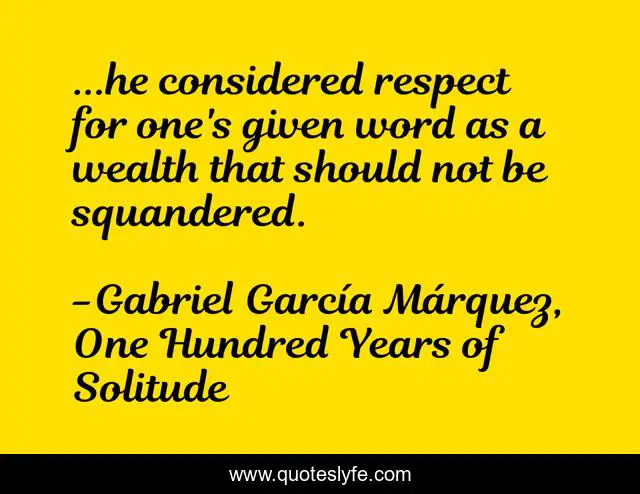 This page presents the quote "...he considered respect for one's given word as a wealth that should not be squandered.". Author of this quote is Gabriel García Márquez, One Hundred Years of Solitude. .