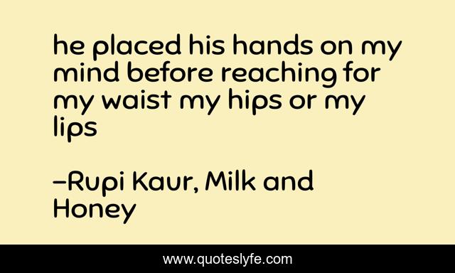 This page presents the quote "he placed his hands on my mind before reaching for my waist my hips or my lips". Author of this quote is Rupi Kaur, Milk and Honey. .