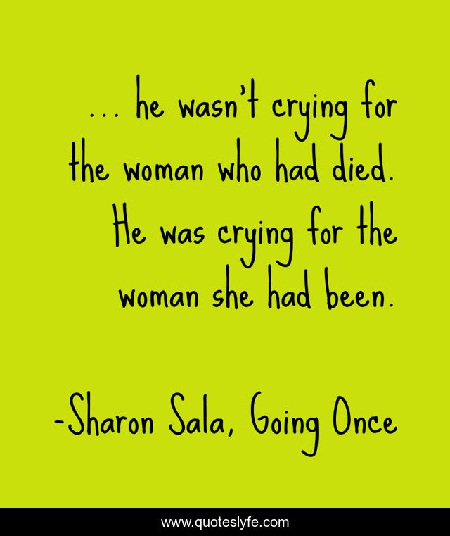 This page presents the quote "... he wasn't crying for the woman who had died. He was crying for the woman she had been.". Author of this quote is Sharon Sala, Going Once. This quote is about grief, loss, death, grief-and-loss, grieving,.