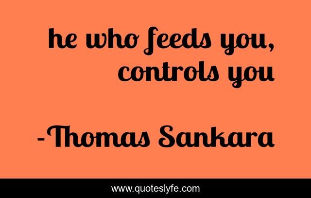 This page presents the quote "he who feeds you, controls you". Author of this quote is Thomas Sankara. This quote is about control, food, sankara, thomas,.