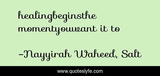 "Nayyirah Waheed, Salt Quotes." Quoteslyfe.com, 2025. Sat. 06 Dec. 2025. <https://www.quoteslyfe.com/quote/healingbeginsthe-momentyouwant-it-to-147916>.