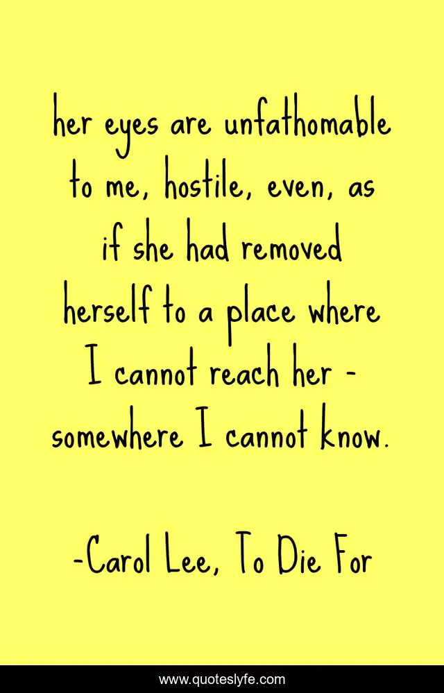 "Carol Lee, To Die For Quotes." Quoteslyfe.com, 2025. Sun. 07 Dec. 2025. <https://www.quoteslyfe.com/quote/her-eyes-are-unfathomable-to-me-hostile-211133>.