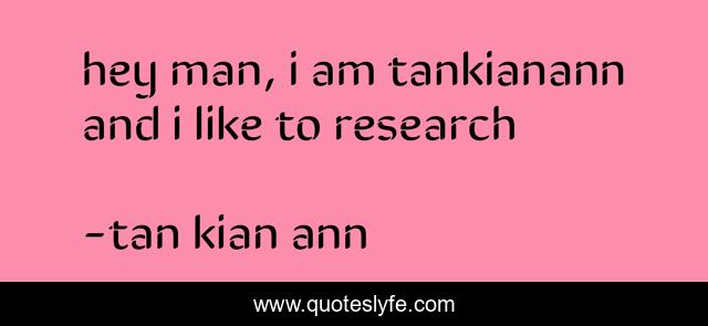 This page presents the quote "hey man, i am tankianann and i like to research". Author of this quote is tan kian ann. .