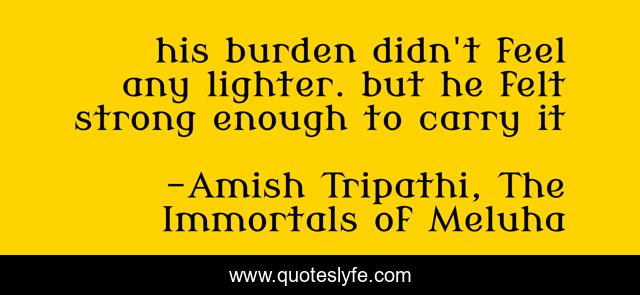 "Amish Tripathi, The Immortals of Meluha Quotes." Quoteslyfe.com, 2025. Mon. 08 Dec. 2025. <https://www.quoteslyfe.com/quote/his-burden-didn-t-feel-any-lighter-179992>.