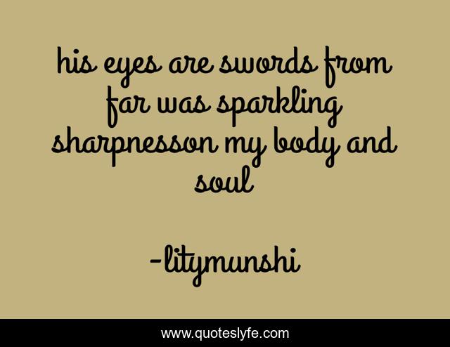 This page presents the quote "his eyes are swords from far was sparkling sharpnesson my body and soul". Author of this quote is litymunshi. This quote is about romance, life, love, soul, affection,.