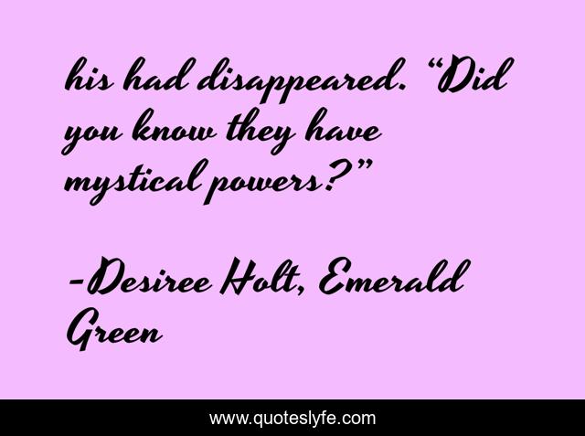 This page presents the quote "his had disappeared. “Did you know they have mystical powers?”". Author of this quote is Desiree Holt, Emerald Green. .