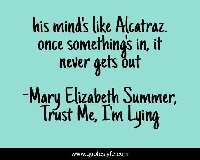 "Mary Elizabeth Summer, Trust Me, I'm Lying Quotes." Quoteslyfe.com, 2025. Fri. 05 Dec. 2025. <https://www.quoteslyfe.com/quote/his-mind-s-like-Alcatraz-once-something-210834>.