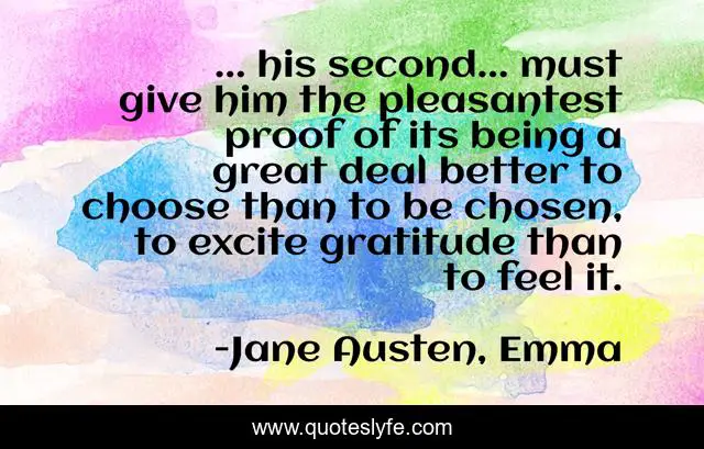 This page presents the quote "... his second... must give him the pleasantest proof of its being a great deal better to choose than to be chosen, to excite gratitude than to feel it.". Author of this quote is Jane Austen, Emma. .