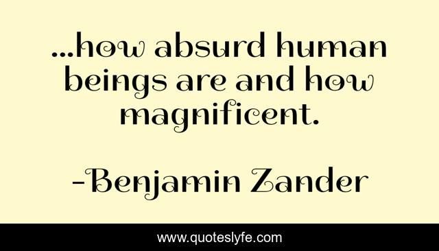 This page presents the quote "...how absurd human beings are and how magnificent.". Author of this quote is Benjamin Zander. This quote is about creativity, art, talent, contradiction, possibility,.