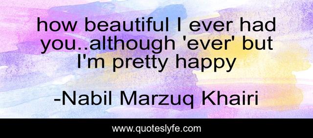 This page presents the quote "how beautiful I ever had you..although 'ever' but I'm pretty happy". Author of this quote is Nabil Marzuq Khairi. This quote is about love, affection,.