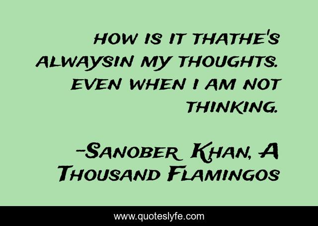 This page presents the quote "how is it thathe's alwaysin my thoughts. even when i am not thinking.". Author of this quote is Sanober Khan, A Thousand Flamingos. This quote is about missing-you, love, i-miss-you, profound, poetry, deep, feelings, romance, passion,.