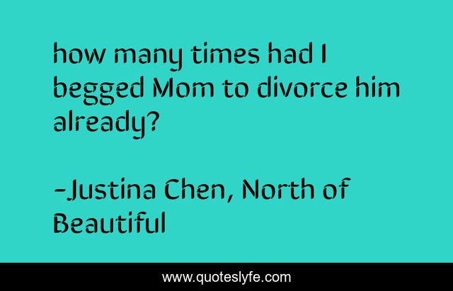 This page presents the quote "how many times had I begged Mom to divorce him already?". Author of this quote is Justina Chen, North of Beautiful. This quote is about divorce, mental-abuse,.