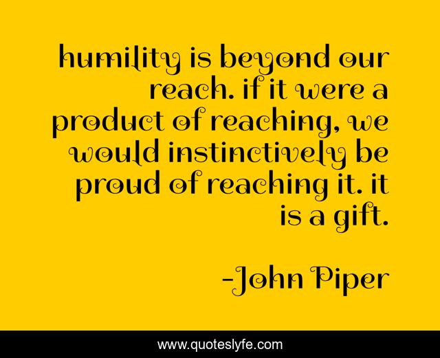 This page presents the quote "humility is beyond our reach. if it were a product of reaching, we would instinctively be proud of reaching it. it is a gift.". Author of this quote is John Piper. This quote is about humility, effort, wisdom,.