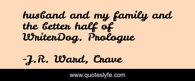This page presents the quote "husband and my family and the better half of WriterDog. Prologue". Author of this quote is J.R. Ward, Crave. .