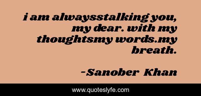 This page presents the quote "i am alwaysstalking you, my dear. with my thoughtsmy words.my breath.". Author of this quote is Sanober Khan. This quote is about breath, romantic, thinking, poetry, stalking, romance, deep-feelings, romancing, words,.