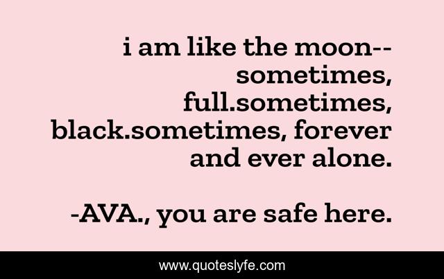 This page presents the quote "i am like the moon--sometimes, full.sometimes, black.sometimes, forever and ever alone.". Author of this quote is AVA., you are safe here.. This quote is about qotd, self-love, love, inspire, empower, poetry, moon, quotes, night,.