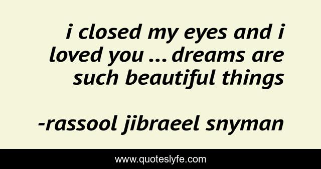 This page presents the quote "i closed my eyes and i loved you ... dreams are such beautiful things". Author of this quote is rassool jibraeel snyman. This quote is about love, philosophy, philosopher, philosophical-musings, philosophical, philosophy-of-life, affection,.