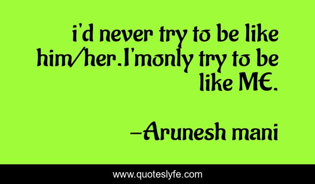 This page presents the quote "i'd never try to be like him/her.I'monly try to be like ME.". Author of this quote is Arunesh mani. .