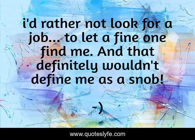 i'd rather not look for a job... to let a fine one find me. And that definitely wouldn't define me as a snob!