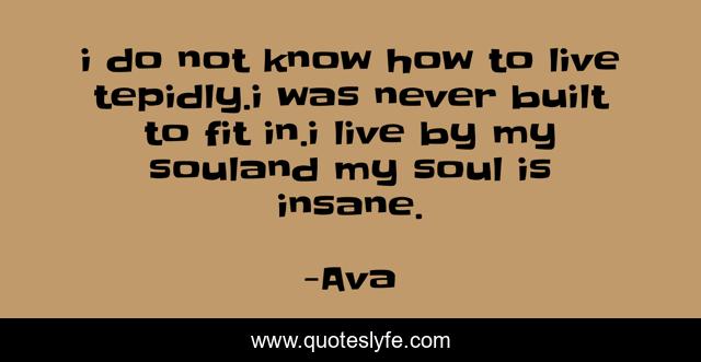 This page presents the quote "i do not know how to live tepidly.i was never built to fit in.i live by my souland my soul is insane.". Author of this quote is Ava. This quote is about love, human-nature, poetry, soul, quotes, human, prose, poems, humanity,.