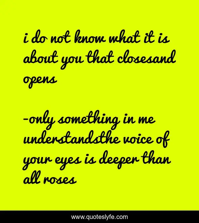 This page presents the quote "i do not know what it is about you that closesand opens". Author of this quote is only something in me understandsthe voice of your eyes is deeper than all roses. .