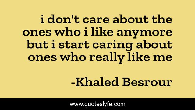 This page presents the quote "i don't care about the ones who i like anymore but i start caring about ones who really like me". Author of this quote is Khaled Besrour. This quote is about caring, love, like, affection,.