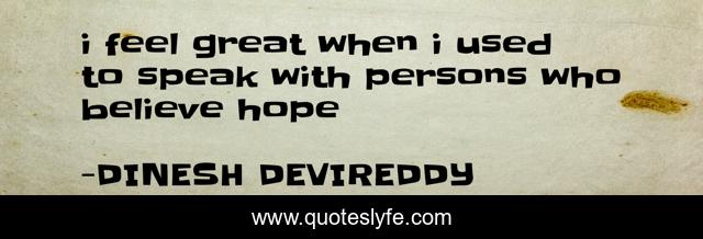 This page presents the quote "i feel great when i used to speak with persons who believe hope". Author of this quote is DINESH DEVIREDDY. .