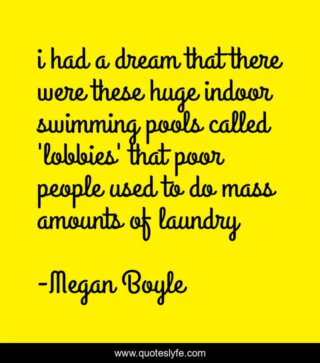 This page presents the quote "i had a dream that there were these huge indoor swimming pools called 'lobbies' that poor people used to do mass amounts of laundry". Author of this quote is Megan Boyle. .