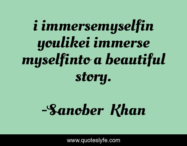This page presents the quote "i immersemyselfin youlikei immerse myselfinto a beautiful story.". Author of this quote is Sanober Khan. This quote is about story, love, romantic, soulmates, soul, poetry, romance, passion, lose-yourself,.