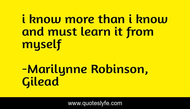 This page presents the quote "i know more than i know and must learn it from myself". Author of this quote is Marilynne Robinson, Gilead. This quote is about self, knowledge,.
