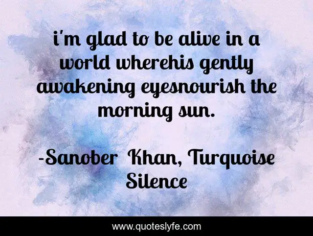 "Sanober Khan, Turquoise Silence Quotes." Quoteslyfe.com, 2025. Sun. 07 Dec. 2025. <https://www.quoteslyfe.com/quote/i-m-glad-to-be-alive-in-25046>.