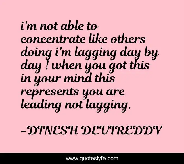 This page presents the quote "i'm not able to concentrate like others doing i'm lagging day by day ! when you got this in your mind this represents you are leading not lagging.". Author of this quote is DINESH DEVIREDDY. .