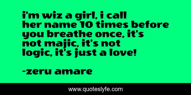 This page presents the quote "i'm wiz a girl, i call her name 10 times before you breathe once, it's not majic, it's not logic, it's just a love!". Author of this quote is zeru amare. .