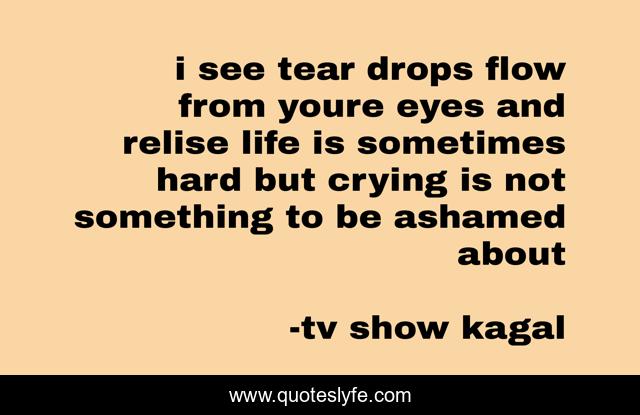 This page presents the quote "i see tear drops flow from youre eyes and relise life is sometimes hard but crying is not something to be ashamed about". Author of this quote is tv show kagal. .