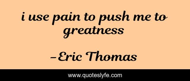 This page presents the quote "i use pain to push me to greatness". Author of this quote is Eric Thomas. .
