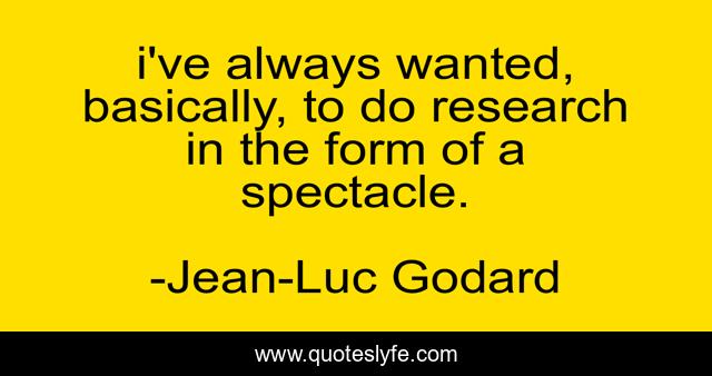 This page presents the quote "i've always wanted, basically, to do research in the form of a spectacle.". Author of this quote is Jean-Luc Godard. .