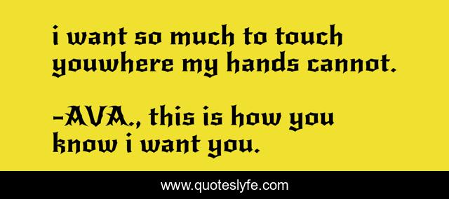 This page presents the quote "i want so much to touch youwhere my hands cannot.". Author of this quote is AVA., this is how you know i want you.. This quote is about prose, falling-in-love, love, human-nature, poetry, quotes, contact, human, hands,.