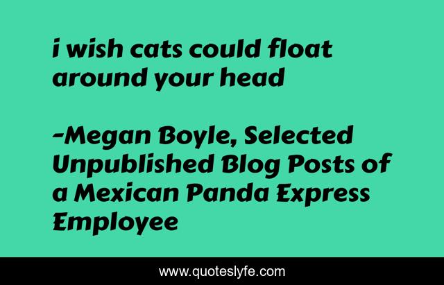 This page presents the quote "i wish cats could float around your head". Author of this quote is Megan Boyle, Selected Unpublished Blog Posts of a Mexican Panda Express Employee. .