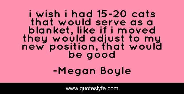 This page presents the quote "i wish i had 15-20 cats that would serve as a blanket, like if i moved they would adjust to my new position, that would be good". Author of this quote is Megan Boyle. .