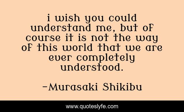 This page presents the quote "i wish you could understand me, but of course it is not the way of this world that we are ever completely understood.". Author of this quote is Murasaki Shikibu. This quote is about connections, world, understanding,.