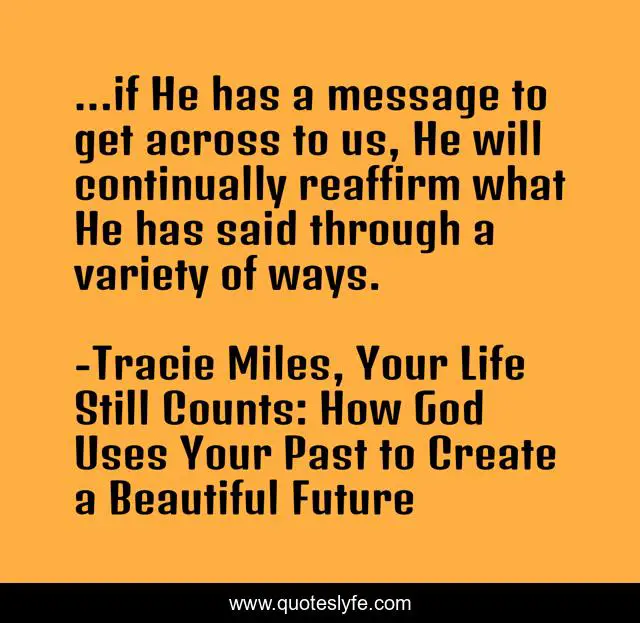 "Tracie Miles, Your Life Still Counts: How God Uses Your Past to Create a Beautiful Future Quotes." Quoteslyfe.com, 2025. Fri. 05 Dec. 2025. <https://www.quoteslyfe.com/quote/if-He-has-a-message-to-get-62277>.